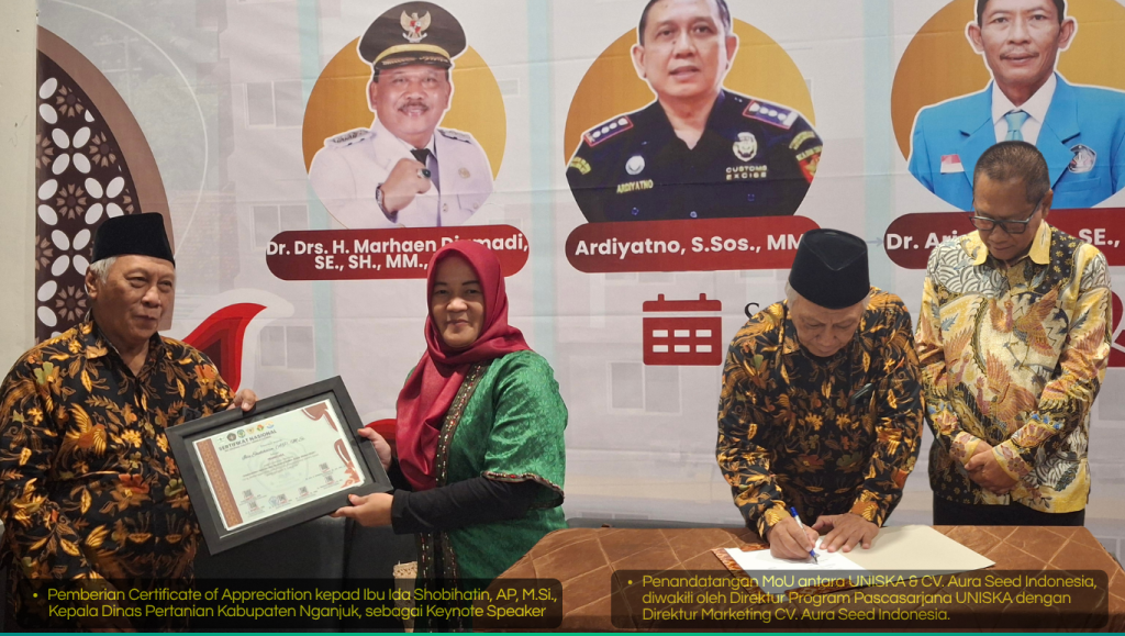 Dalam kesempatan ini pula dilaksanakan penandatanganan nota kesepemahaman kerjasama antara Universitas Islam Kadiri Kediri dengan CV. Aura Seed Indonesia sebagai upaya menjalin kerjasama dalam bidang Pengembangan Sumberdaya Manusia dan ke ilmuan dibidang masing-masing, akademik dan industri, dalam usaha meningkatkan skill karyawan CV. Aura Seed Indonesia terutama dalam bidang manajemen, pengelolaan pemasaran dan kualitas produk, serta pengembangan kemampuan mahasiswa dalam industri nasional.